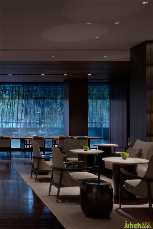回望大堂,其形恣意流淌,其內(nèi)克制嚴(yán)謹(jǐn)??臻g中軸對(duì)稱(chēng),沿襲古典建筑的三進(jìn)院落布局,四處恢宏燈籠高懸,其下沙發(fā)、銀光屏風(fēng)悄然圍合,恰如當(dāng)代私府宅第。原空間壓抑低矮,團(tuán)隊(duì)砸掉跑馬廊,換取7.8米挑高,營(yíng)造非凡氣勢(shì),尊迎天下。