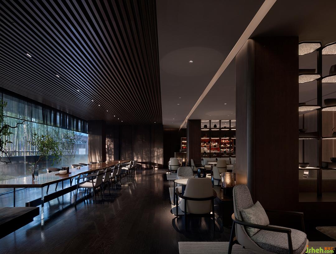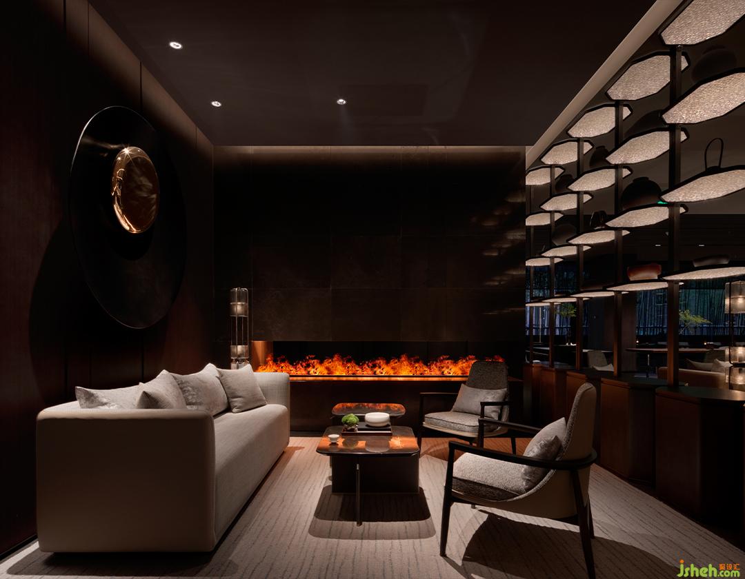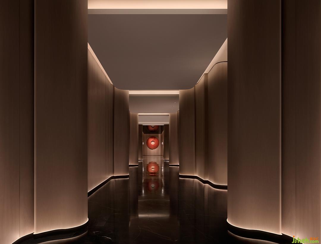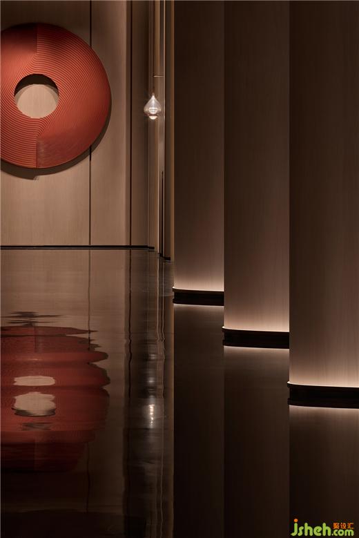 上海酒店設(shè)計(jì)以墻為大潮,奔涌,拍岸。燈是浪尖閃耀的光。魚(yú)群風(fēng)暴匯聚空中,攪動(dòng)無(wú)形之海??偱_(tái)默然矗立,后方旭日正東升——宣紙覆疊亞克力上,潑墨赤霞、朱砂……捎帶印象派的毛邊。