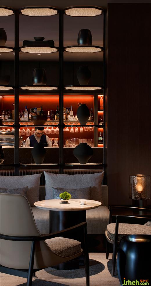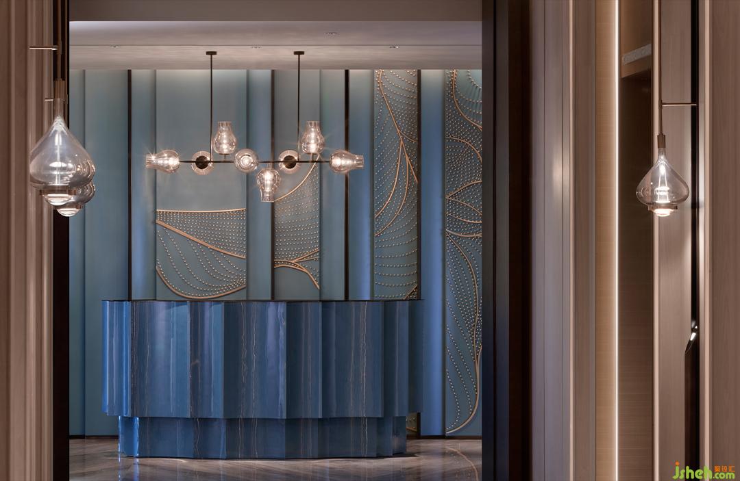 信步全日餐,青藍(lán)波光隔斷縈廻四周,各色島臺如港岸檔口精心羅列。上海酒店設(shè)計海鮮處交織著粗糲顆粒與金屬網(wǎng)格;西餐部利用線面精致分割,麵家萃取書卷冊頁結(jié)構(gòu),營造韻律感空間褶皺。隨物賦形,盡水之變。同時多處引入帶反射感的材質(zhì),化解原建筑采光局限。