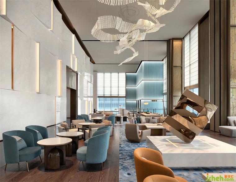 坐擁粵港澳大灣區(qū)優(yōu)越地理位置,公共區(qū)域通過大量體塊穿插的設(shè)計手法、原創(chuàng)藝術(shù)品及圓弧造型的使用,演繹集裝箱、船帆等元素,希爾頓酒店設(shè)計打造一個功能性與藝術(shù)性并存的國際會展中心希爾頓酒店。