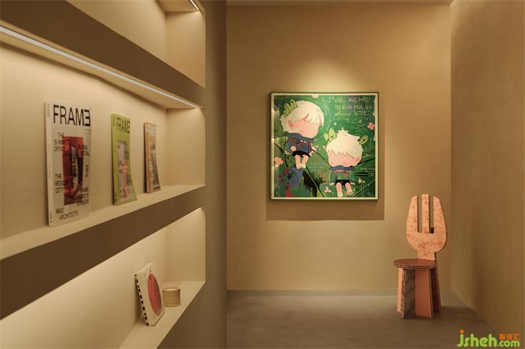 從入口轉(zhuǎn)入,線性的空間引導(dǎo),我們躍入一個(gè)狹小但被柔和色彩包圍的空間,內(nèi)心好像有一種想一直往前的心情,去探尋下一個(gè)路口的奇遇。辦公室設(shè)計(jì)端景的綠色掛畫與溫柔的色彩結(jié)合,一些自然寧?kù)o的體驗(yàn)在此處展開(kāi),歡迎來(lái)到“AURORA的夢(mèng)游仙境”!