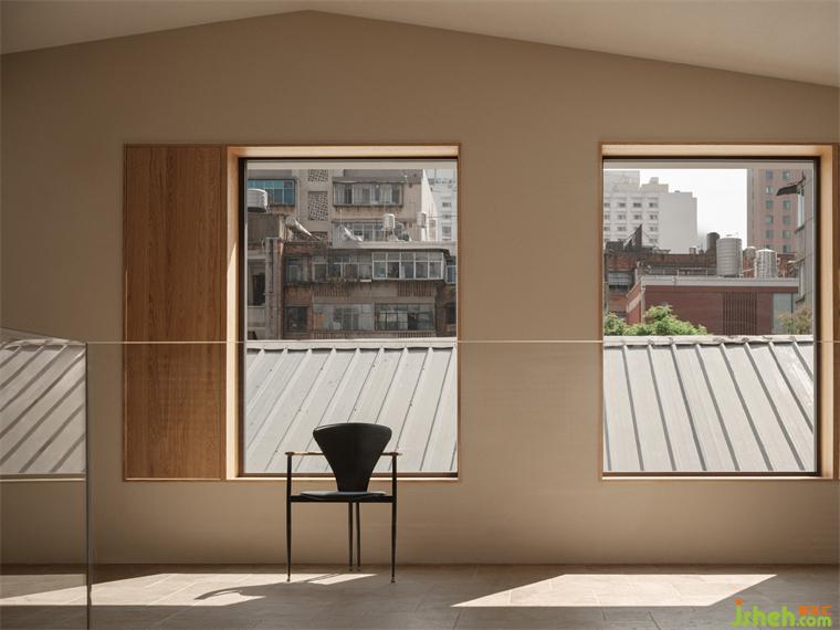 A plenty of rectangular windows was largely used in the design to introduce more natural light.The skylight on the top of the office, bright but focused light meets the demand of jewelry identification; the white and bright light in the floating window bring the landscape in; the large glass blocks on the south side make the mid-day sunlight more warm and gentle; and the side window on the west side, with its secretive and gentle light, protect the privacy of the studio in its entirety.