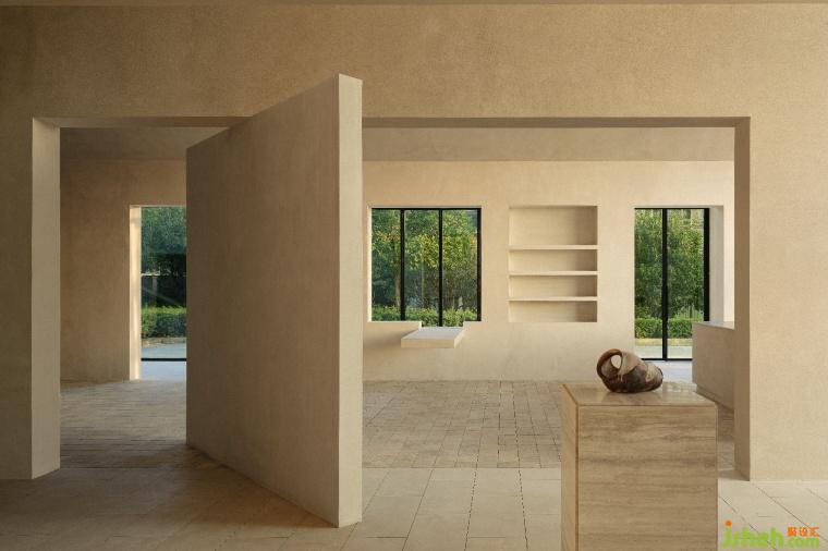 清涼的風(fēng)拂過,它舒緩的流動(dòng)痕跡切割出建筑垂直溫潤(rùn)的立面形態(tài),在陽光的照拂下,沉寂如詩,與瞬息萬變的自然景觀交融相棲,將建筑之美還原于自然之中。