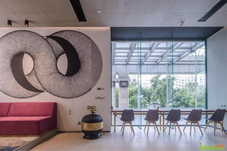 室內(nèi)設計將水吧、交流區(qū)、洽談區(qū)、會議室、共享辦公室、精品展示服務區(qū)等元素融合起來。燈光將多維生活、多重居住、共享辦公、時尚餐飲、多元活動串聯(lián)起來。公共區(qū)域內(nèi)恰到合適的暖白光奠定了空間的清新怡人,與傳統(tǒng)酒店的暖光區(qū)別分開,自然、和諧的照射燈具給屋內(nèi)增添些許生氣,舒卷自如的怡人氣氛就這樣蔓延開來。讓進入此空間的人都能感受到自在舒適。