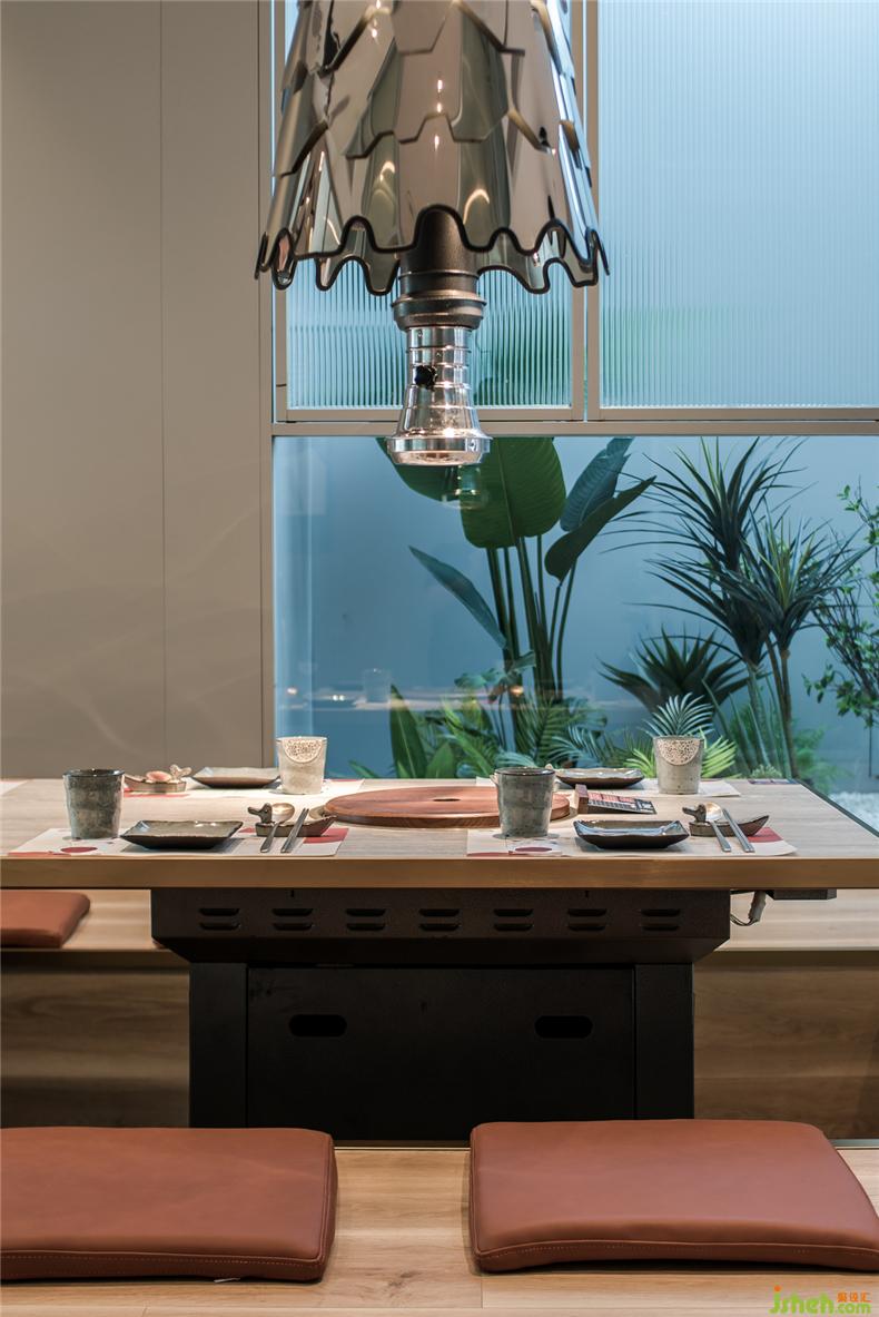 燈具外觀與整體裝飾保持一致,通過角度、功率、光束角的差異化處理,適度控制明暗對比去選擇性的引導空間主次。結(jié)合金屬板、屋面天花,照明干凈利落。餐廳設計