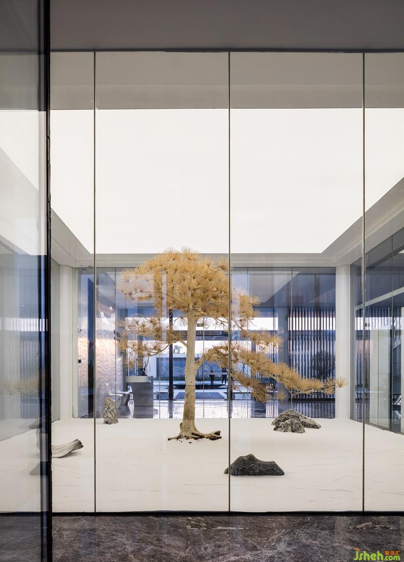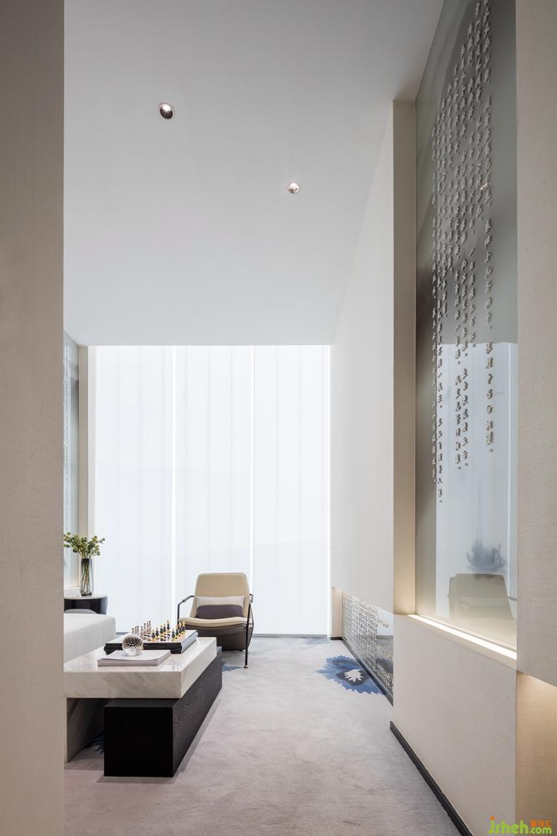 瞭望塔作為展示中心的延伸部分,設(shè)計(jì)理念與展示中心一脈相承。室內(nèi)設(shè)計(jì)師通過對(duì)“襄”、“華”二字的印章篆書演變,演化為瞭望塔的建筑形態(tài)。建筑尊而不古,華而不藻,體現(xiàn)了現(xiàn)代設(shè)計(jì)手法對(duì)傳統(tǒng)文化的全新演繹。