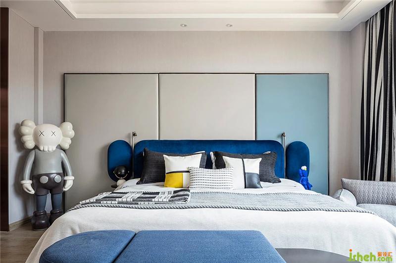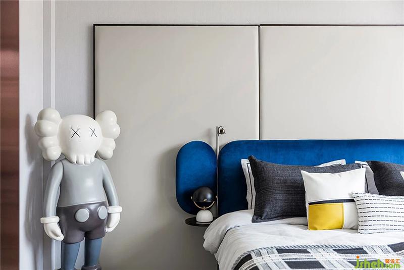 三層男孩房與戶外露臺規(guī)劃為一層,親近自然,培養(yǎng)男孩的獨立性。將大面積的光迎于室內(nèi),沉靜的藍色無溫暖的陽光相碰撞,讓理智無溫情并存。整個房間以風潮正熱的KAWS為設計元素。KAWS的情緒如兒童的一樣,沒有隱藏的與世界進行交流,做一個真實的自己也是一種潮流。