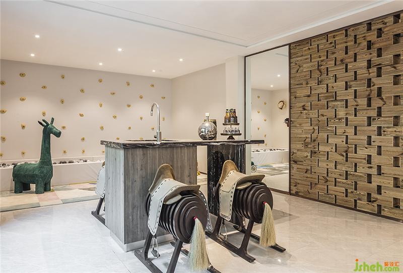 作為空間中主要的休閑類社交空間,藝術收藏、親子娛樂與酒吧舒適自然的軟裝家居的彼此互動中,產(chǎn)生出了于春意中縱情娛樂的家居休閑場所