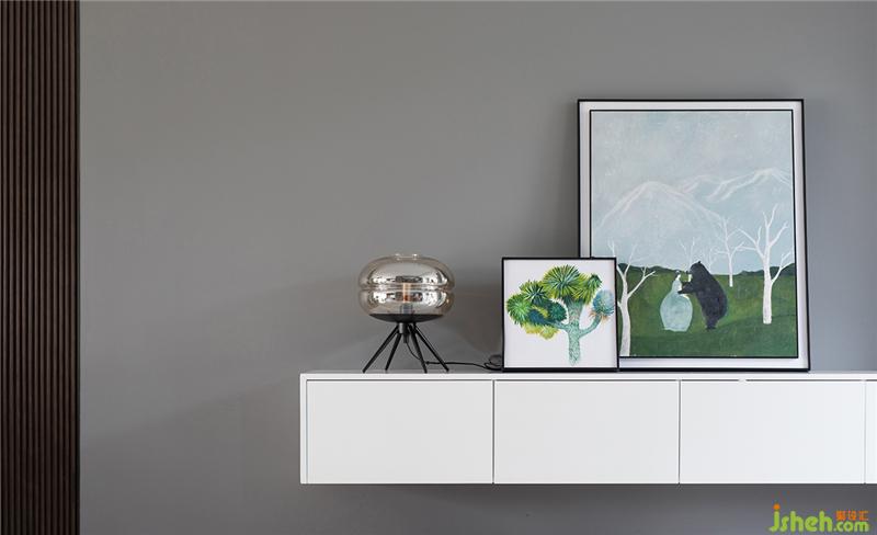 入戶玄關(guān)結(jié)合主人對藝術(shù)繪畫的濃厚興趣,擺放一組以Michelle Morin 和Akira Kusaka的大小錯落藝術(shù)畫,為這個空間添上一筆藝術(shù)的色彩。