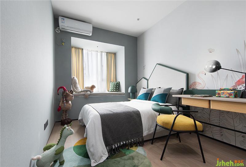 大自然是孩童們向往的世界,郁郁蔥蔥的森林,各色各樣的動物,讓人眼花繚亂,而孩童們所熱愛的森林總是單純的,美好的。我們選擇了自然有活力的綠色、藍(lán)色、黃色搭配,同時通過灰色墻面的調(diào)和,營造出冷靜中帶有活潑的色彩氛圍。