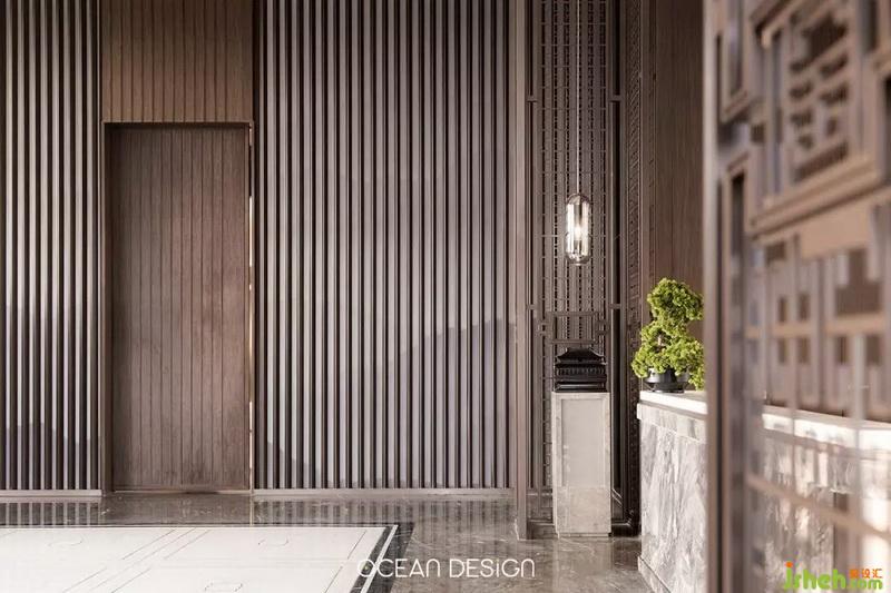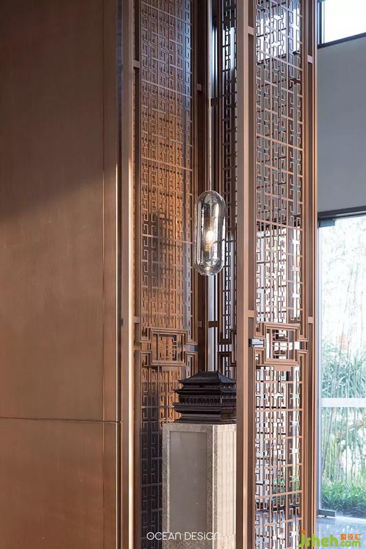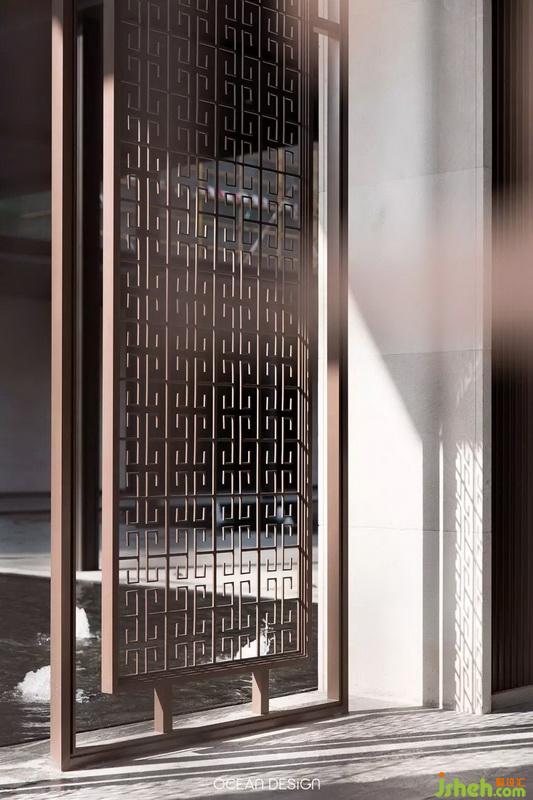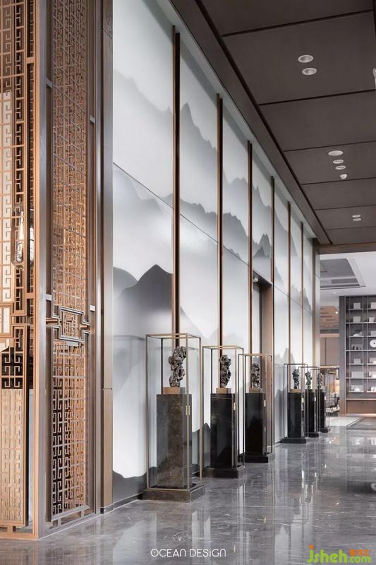 于是,設(shè)計(jì)師以追尋歷史文化為出發(fā)點(diǎn),借用水紋、山巒等元素和筆墨演繹山河脈絡(luò),將大地之美和人文特色融入當(dāng)代美學(xué),通過(guò)現(xiàn)代手法來(lái)演繹空間的韻味,熟練將留白、光影等手法,讓觀者在參觀時(shí)感受到遞進(jìn)式的尊貴感。