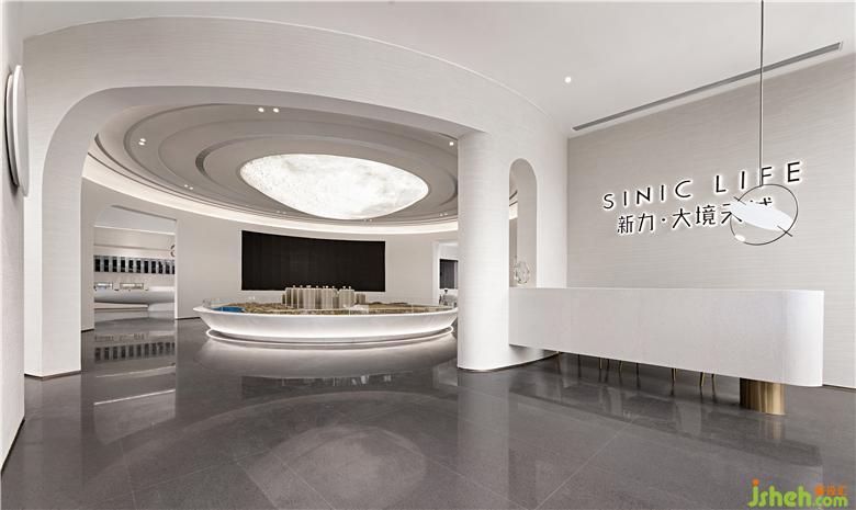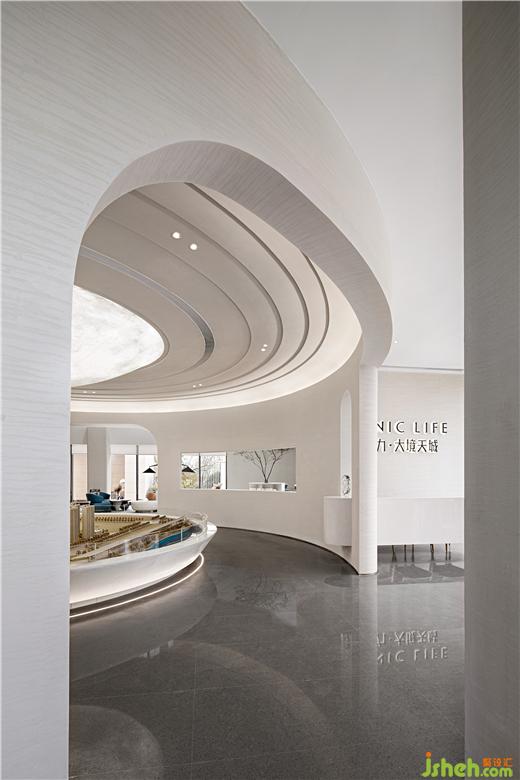 OCEAN DESIGN考察大境天城的基地、售樓處設(shè)計(jì)項(xiàng)目的文化訴求和客戶群體的心理接受度后,以新現(xiàn)代主義簡(jiǎn)約美學(xué),梳理空間內(nèi)部邏輯,以“漫步星空”為概念,用包容萬(wàn)象的“白”和弧線造型的流動(dòng)與交互,構(gòu)造一個(gè)商業(yè)性+趣味性+體驗(yàn)感并存的未來(lái)式生活體驗(yàn)中心。