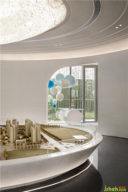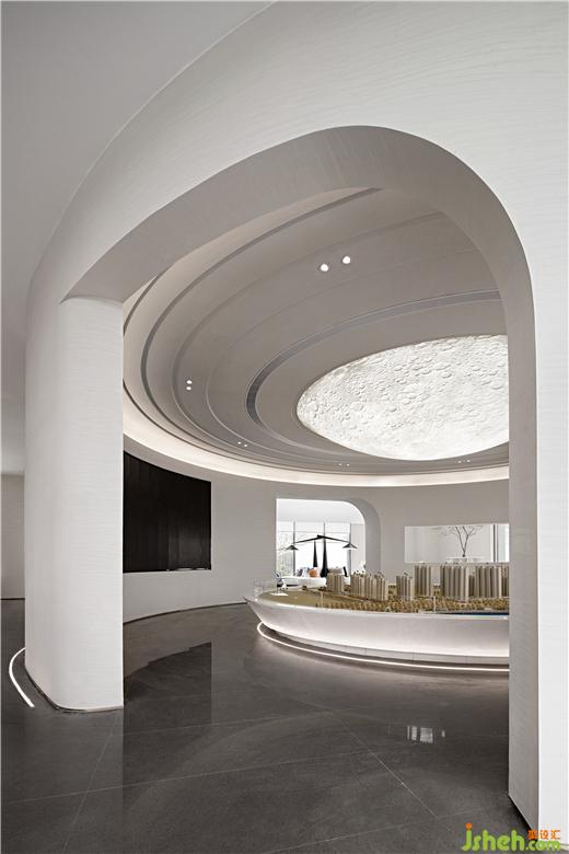 設(shè)計(jì)師創(chuàng)造性地將宇宙的斗轉(zhuǎn)星移幻化入空間之中,隨著人們的走動(dòng),頗有踏月神行的輕盈感。整個(gè)空間沒(méi)有多余的裝飾,光影在有限的空間里投射出無(wú)限的闊度,于在室外面看,在室內(nèi)其中,在方寸之間,都可獲得震撼心靈的觀感體驗(yàn)。