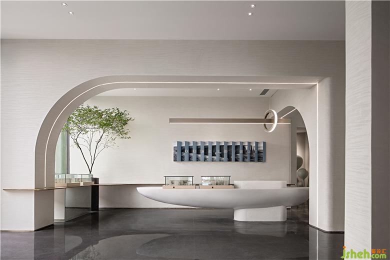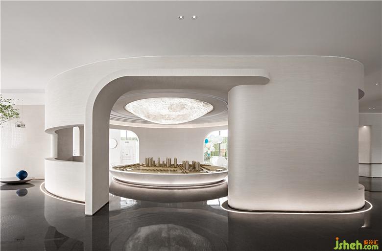 售樓處設(shè)計(jì)曲線在空間的運(yùn)作,打破對(duì)稱、端正的規(guī)律,舒緩的旋律與輕柔的擺動(dòng)相互契合,動(dòng)感活潑的韻律美悄然而生。跟隨設(shè)定的場(chǎng)景,人們移步景移成為了空間的主角,懷揣著美好的憧憬,邁步未來(lái)的探索。
