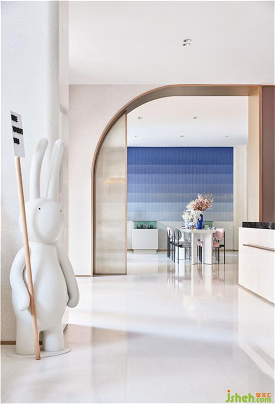 以夢(mèng)游伊甸園為故事主線,通過(guò)夢(mèng)幻色彩的渲染,光影的律動(dòng),將本案呈現(xiàn)出不同場(chǎng)景的沉浸式體驗(yàn)。前場(chǎng)為外觀與功能性為一體的咖啡吧,后場(chǎng)則側(cè)重商務(wù)交談的私密性,以社交性場(chǎng)景為主導(dǎo),營(yíng)造輕松融洽的商務(wù)氛圍。