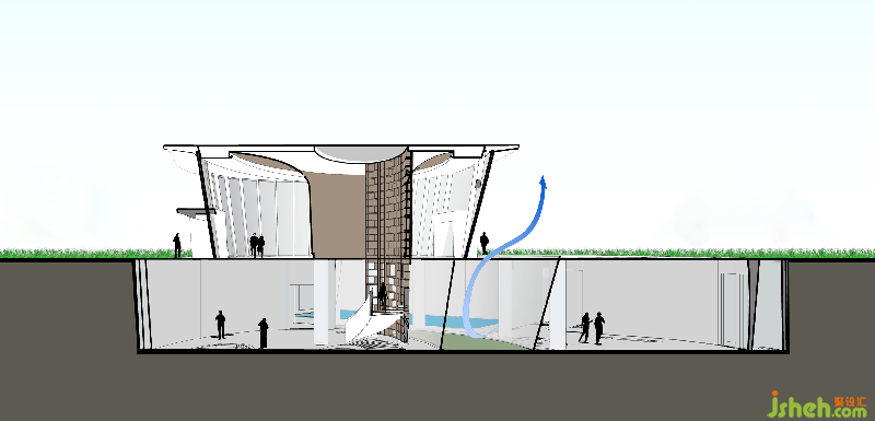 以天幕仰首,在負一層空間中設置多處采光天窗,開啟了室內與室外的延伸。在平緩的光影相映下,產生一種溫暖的包圍感。