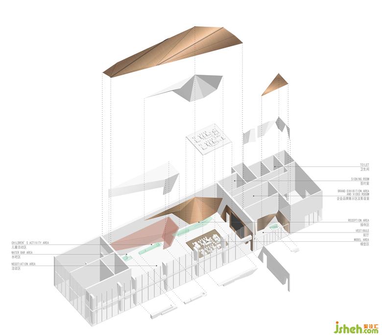 山脈與礦石共有的切割折線元素,幻化為空間的幾何語(yǔ)言,配合空間游移的功能轉(zhuǎn)換,售樓處設(shè)計(jì)形成傳承性與社交性兼容的展示空間。