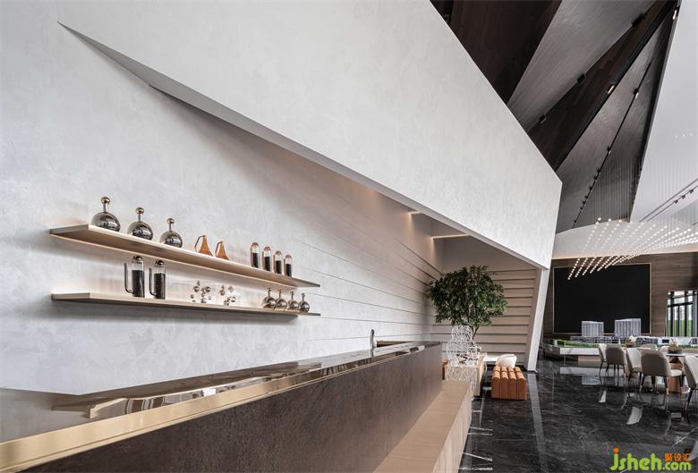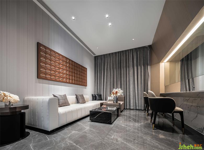 簽約室延展著邯鄲山脈的意境,優(yōu)質(zhì)皮藝和天然理石的搭配,為空間增加精致氣息,溫潤而干凈利落。