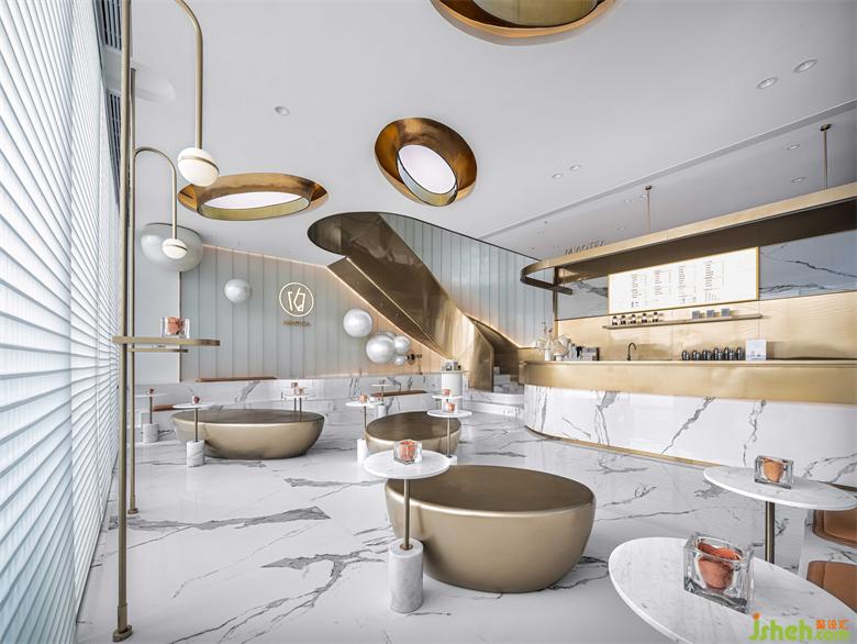在展廳內(nèi)奶茶店和美發(fā)沙龍的設(shè)計過程中,奧迅希望在此構(gòu)建一場”聽雨暮秋“之境,把金黃的暖,詩意的涼,用一場綿綿雨霧打開秋的扉頁……