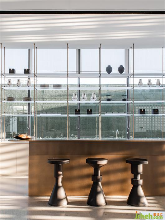 緩步前行,體會(huì)設(shè)計(jì)師以巧妙的“隱”手法,將接待臺(tái)與水吧連成一體。伴隨著晨間的光影肆意舞動(dòng),映射出一種質(zhì)樸淡泊的生活意境。