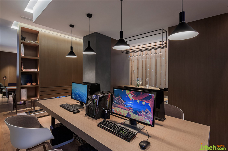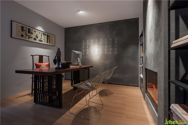 行者至此,才至禪室,安心落座。此空間是深圳設(shè)計(jì)公司設(shè)計(jì)師對工作承諾與交付的地方,墻壁上以傳統(tǒng)雕刻技藝形式將唐詩《題破山寺后禪院》刻于墻面,與休息區(qū)墻壁上的《送靈澈上人》前后照應(yīng),意為聚散有時,善始善終。