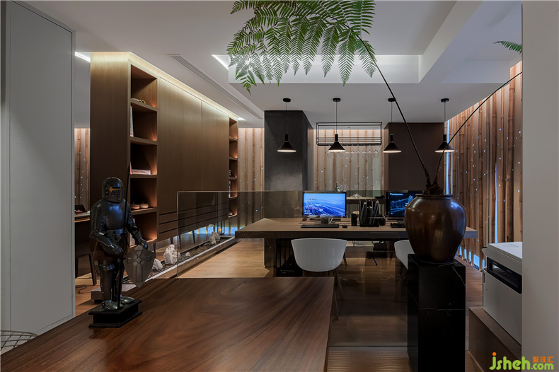 至轉(zhuǎn)彎處,潺潺流水,叮咚作響,溫暖柔和的光影附著在空間中,賦予空間極大的生命力與生動性,以禪意、自然與和諧為主題的蘊(yùn)意,秘境深邃,養(yǎng)育整個空間靈性,仿在崇山峻嶺里,竹林一隅中,一線清泉叮咚聲在林中回響。