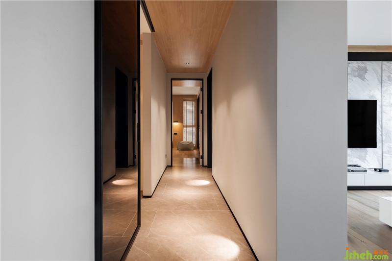 走廊是將所有空間串聯(lián)在一起的重要通道,設(shè)計在毫無保留的在光影的渲染下,以落落大方的姿態(tài)闡釋和諧。