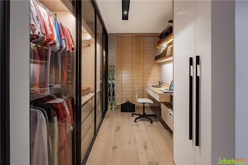 別有一番天地的衣帽間內(nèi)部,特地設(shè)計(jì)了一個(gè)低調(diào)安靜的獨(dú)處空間。當(dāng)初我們?cè)诮缍總€(gè)功能屬性時(shí),其實(shí)并未強(qiáng)調(diào)明確的劃分,而是隨著男主人的心境來(lái)隨意切換空間的使用狀態(tài),顯露出空間的最終目的,一直都是為人享用的這一概念。