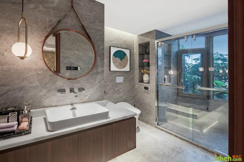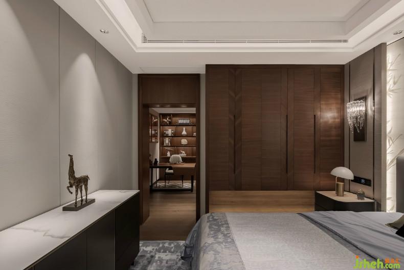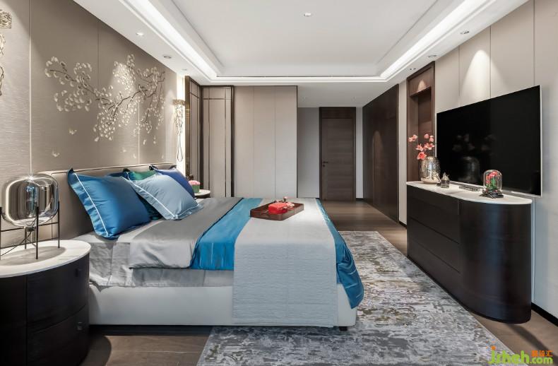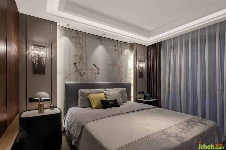 臥室的素雅和順來自軟裝配飾之間的和諧默契,沒有刻意的強調(diào)設(shè)計感。落地窗外的自然景觀折射入內(nèi),與室內(nèi)水滴狀壁燈、壁紙的銀杏花香所營造的自然氛圍遙相輝映。不難發(fā)現(xiàn),空間在塑造人文精神內(nèi)涵下,各個空間的裝飾藝術(shù)品的造型、形態(tài)、細(xì)節(jié)都傳達著尊崇自然的哲學(xué)思想。