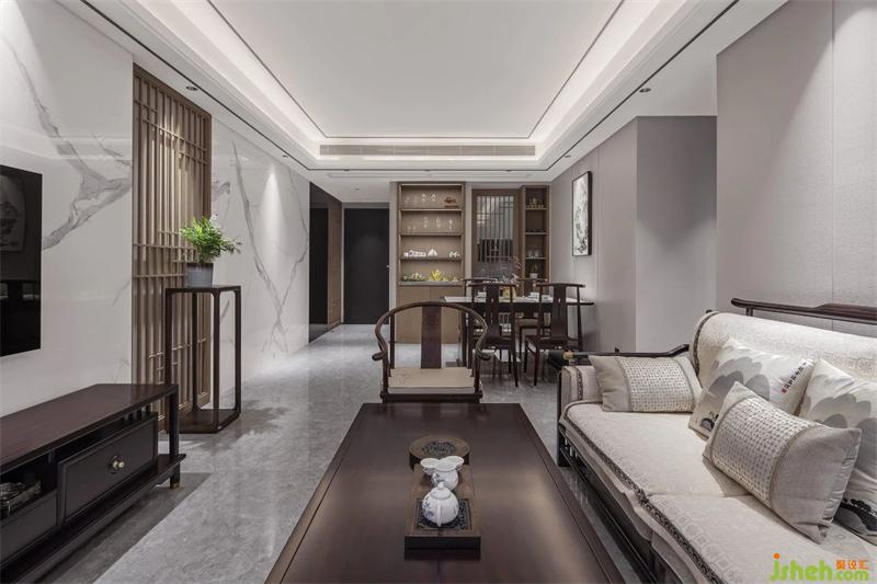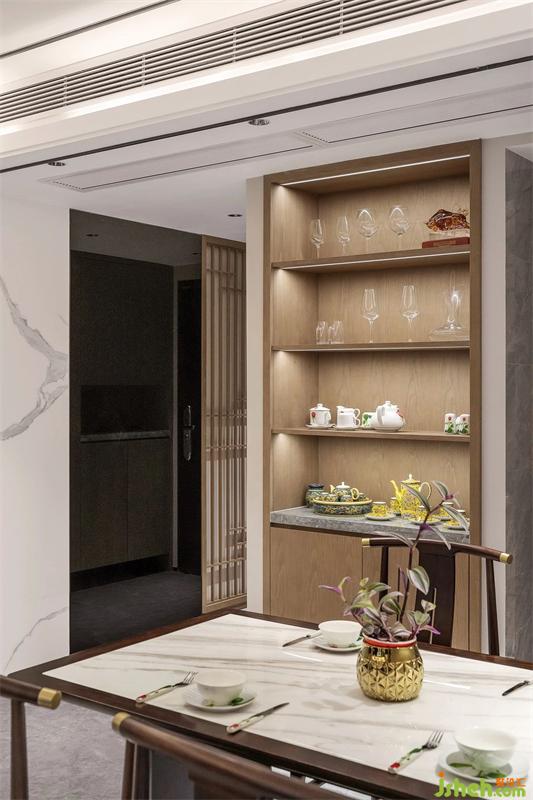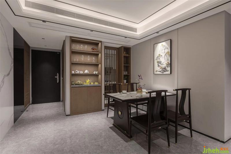 裝修設計由玄關入,簡雅木色鋪墊古樸之氣,清氣瀠洄,形美而意境悠遠,延伸至客廳,風雅盡然,底蘊沉穩(wěn)但勝在靈動。