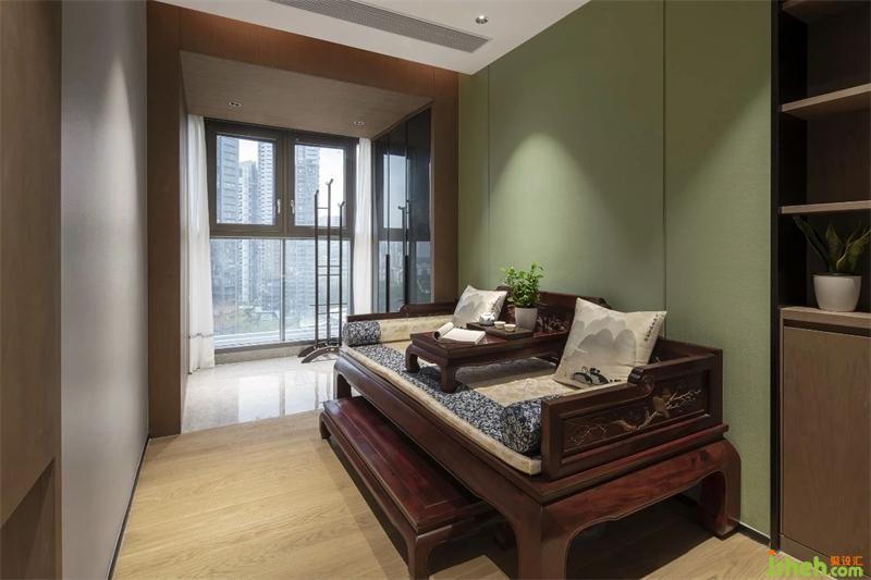 當(dāng)光影落下,心靈歸于平和,綠色的背景墻與古色古木的中式座椅如詩(shī)一般,清雅雋永,正對(duì)了那句:“談笑有鴻儒,往來(lái)無(wú)白丁??梢哉{(diào)素琴,閱金經(jīng)。無(wú)絲竹之亂耳,無(wú)案牘之勞形?!?