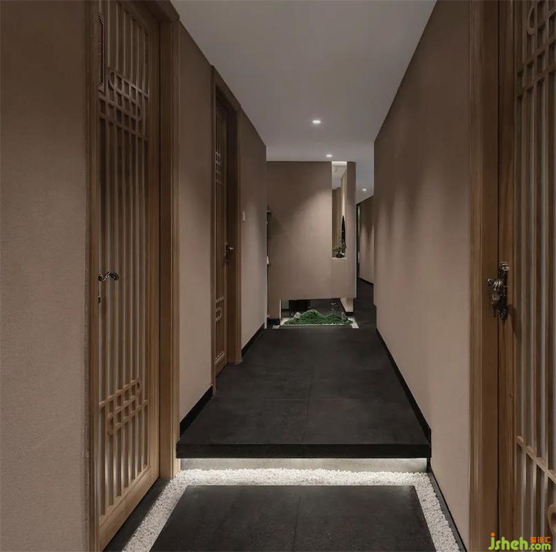 養(yǎng)生館設(shè)計以中式長廊的布局貫連會館,隨著材質(zhì)、線條、光影的變化,交疊出不同的視覺感受,但處處透著干凈與清澈,點(diǎn)綴“一花一世界”的自然景致,將中國人骨子里的溫良,用一種極其克制的方式展現(xiàn),深遠(yuǎn)而悠長。