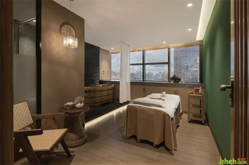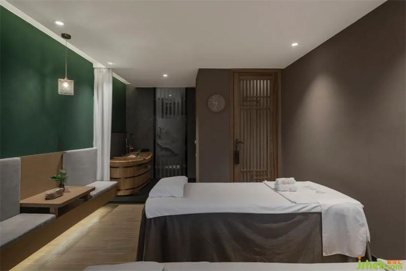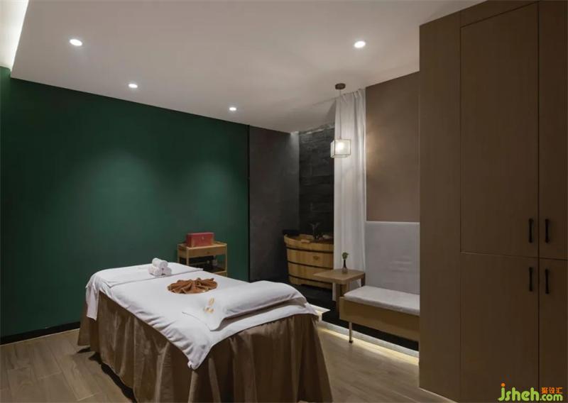 “減去浮華,終歸本真”——調(diào)理室都以深綠色為主調(diào)、木色協(xié)調(diào),點綴暗調(diào)燈光,養(yǎng)生館設(shè)計簡單但充滿了春季的明媚與浪漫,如詩如畫,軟裝搭配上也統(tǒng)一風(fēng)格,自然為本,精致舒適,又各具風(fēng)雅,氛圍感十足。