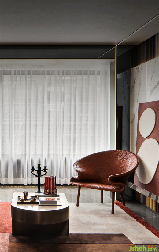 布魯盟設(shè)計(jì)一向以先鋒為尚,以游牧世界的開放心態(tài),描繪頂奢質(zhì)感與靈動日常的空間鏡像。此次以“義烏紅”的在地性為源點(diǎn),新構(gòu)、暈染、重塑家的符號意義,設(shè)計(jì)師解構(gòu)出尋常造物之外的非常規(guī)之美,編織靜享怡居的塔尖大平層藏品。