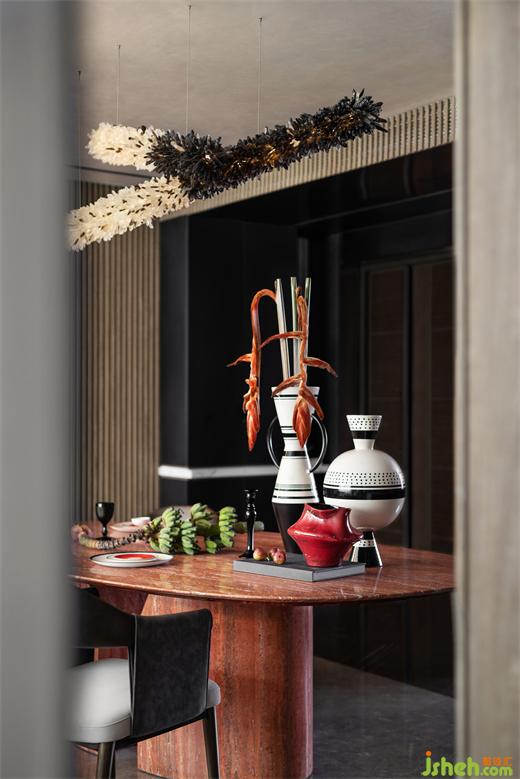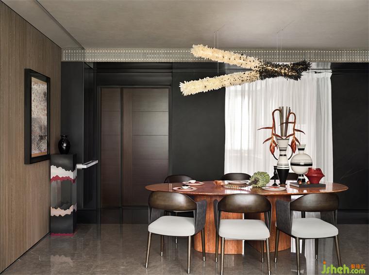 “設(shè)計,最讓人著迷的便是對生活的省察,追究到物象之外的部分?!鄙省⒓y理、幾何,有機(jī)融入日常場景,樣板房設(shè)計讓生活泛起漣漪。