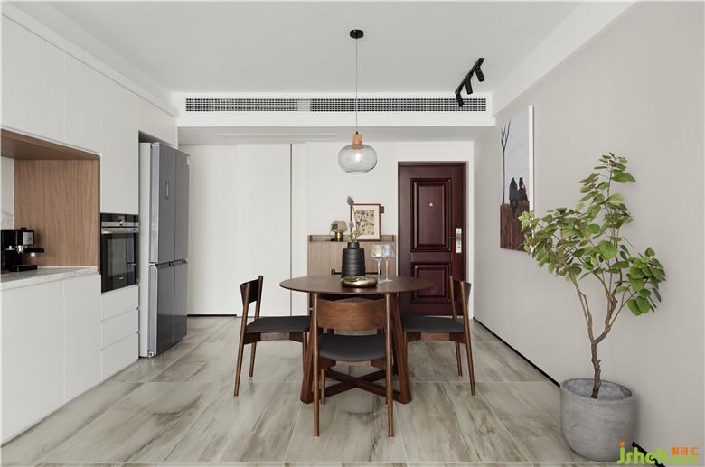 對于小戶型空間的視覺效果,開放無疑是一個最合適的詞語。在石材上設計一組強大的柜體,為客廳、餐廳及廚房提供更加完整的功能。