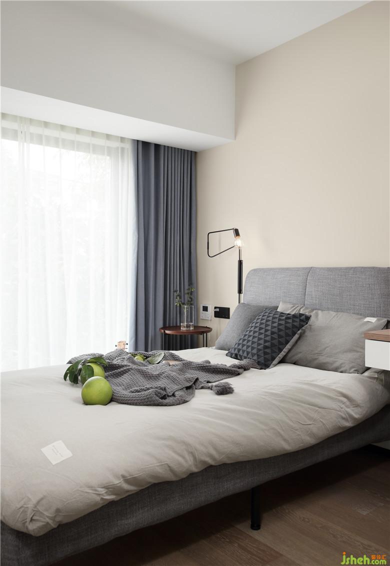 次臥,特意留給父母的房間。兩個(gè)自然采光點(diǎn)保證室內(nèi)的明亮舒適,而遮光隔熱的折疊羅馬簾,又能營造踏實(shí)的睡眠環(huán)境。清淡沉穩(wěn)的色調(diào),自然的原木氣息,靜心感受溫暖宜人的空間。