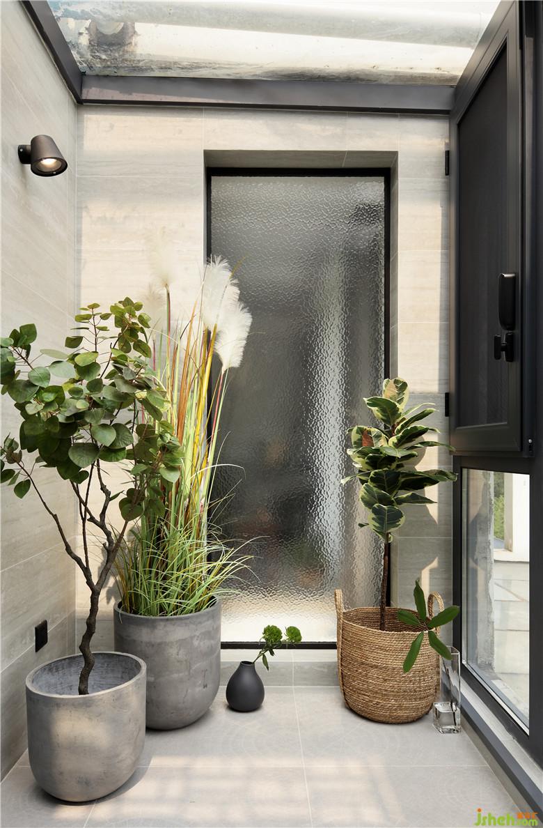 改造成陽光房的陽臺(tái),與客廳只用玻璃相隔,一內(nèi)一外之景,因?yàn)樗y立體凹凸的質(zhì)感和光影的透射,視覺感受顯得清雅宜人。