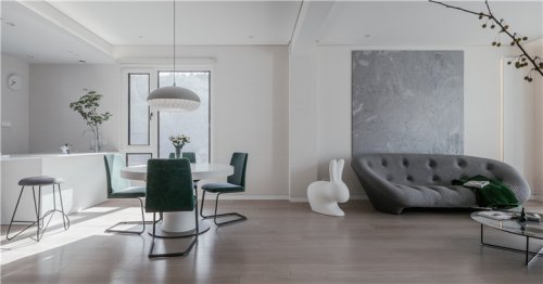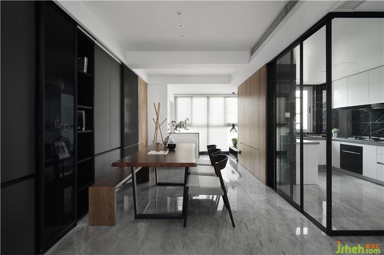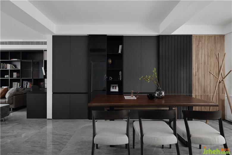 黑白灰和原木色,無論身處哪個位置,都擁有不同的透光度,氛圍也隨著光線發(fā)生著妙不可言的改變。啞光柜體、玻璃移門、拼接木飾面,讓現(xiàn)代感十足的設計線條與比例,營造層次豐富、設計語言多彩的立體餐廳空間。