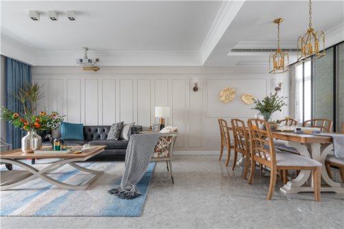 室內(nèi)設計師利用玄關、廚房、客廳不同方位和角度的自然光線變化來調(diào)整餐廳區(qū)域的景深,形成一種連續(xù)、重疊的效果。不同的空間交互延伸,構筑餐廳大氣敞朗的人文意象。