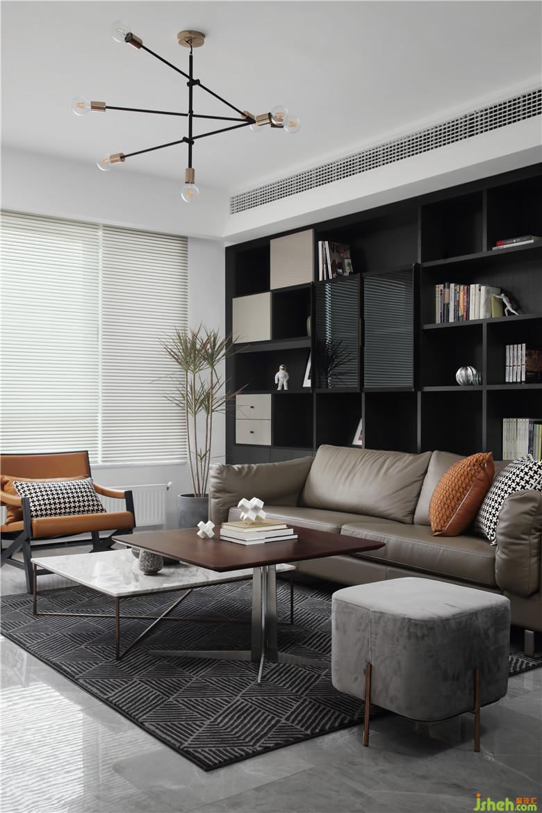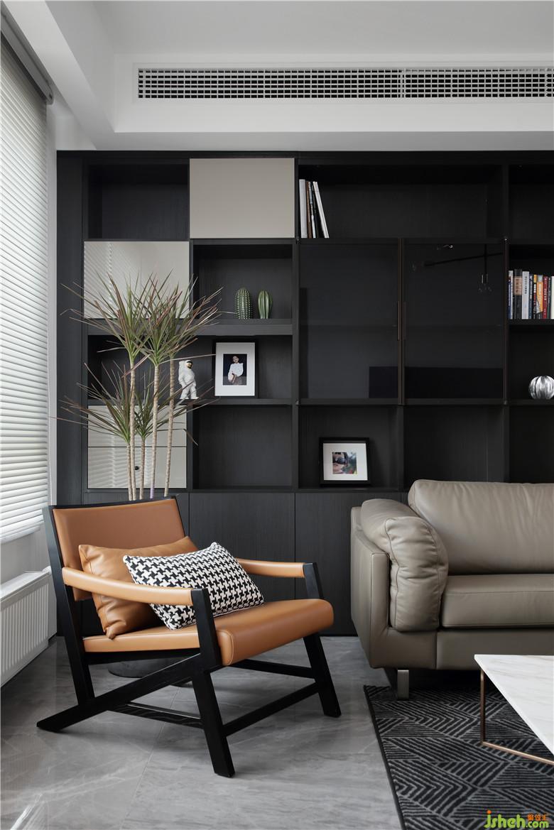 光線配合家具,渲染沉穩(wěn)、簡約的氛圍。而橘色系的單椅和抱枕巧妙地打破了黑白灰的單一,讓格調(diào)更加鮮明,層次感更為豐富、分明。閑時泡上一杯咖啡,濃郁醇厚的香氣充盈在空氣中,靠在椅子上讀一兩章小說,享受休閑午后時光。