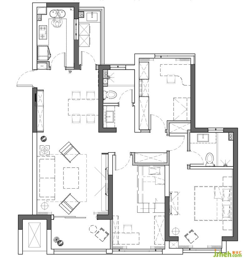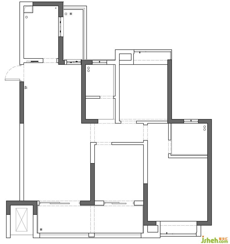 璃與玻璃之間,也存在細(xì)微差別。洗衣房的門(mén)正對(duì)餐廳區(qū)域,采光的同時(shí)還需考慮居住隱私,因此選擇磨砂玻璃;而廚房為了彌補(bǔ)玄關(guān)的采光則選擇透明玻璃門(mén),也讓居住過(guò)程更純粹地傳達(dá)出真實(shí)生動(dòng)的生活狀態(tài)。