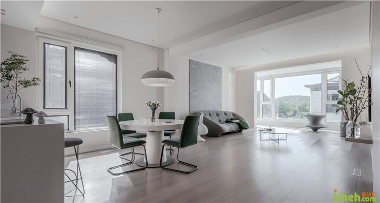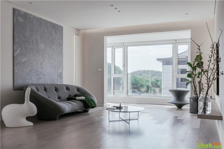 大平層,以大面積的留白滿足居住者傾向于“斷舍離”的選擇。而設(shè)計(jì)留白的原因一是意在凸顯家具的重要性,家人依偎、親密無間;二是意在凸顯室外風(fēng)景的自然美妙,框筑輕松舒適的生活旨趣。
