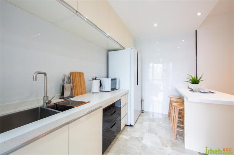 半開放式的廚房,打破了原有死板的功能分區(qū),讓客廳,廚房,餐廳串通,增強(qiáng)了三個(gè)功能空間生活場(chǎng)景的互動(dòng),生活動(dòng)線的巧妙過度連接,提高空間的利用率同時(shí),讓房子更加通透。