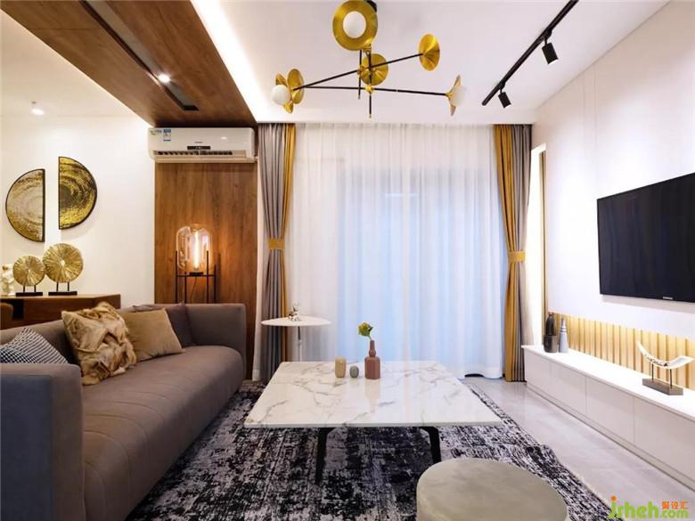 客廳改造后動線清晰,輕奢精致,設(shè)計師設(shè)計了一面落地窗,打通了和臥室的陽臺,增加客廳和臥室的光線,清爽的大理石紋理給客廳增加一縷清涼??蛷d做了半吊頂木質(zhì)的設(shè)計,這樣一來客廳與餐廳的功能區(qū)域更加清晰,復(fù)古輕奢的吊燈,金屬質(zhì)地提升了客廳的格調(diào)和氣質(zhì)。