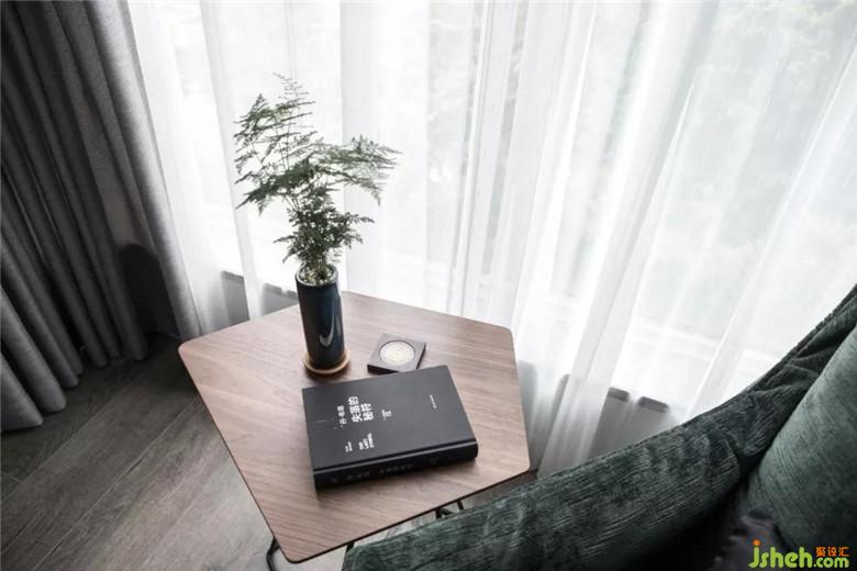 高雅自由的空間,充滿了唯美的想象,灰色加墨綠色的搭配,提升空間沉穩(wěn)度,黃銅色床頭燈不但跟墨綠色很搭,且增添了空間的復(fù)古氣息。原木色的床頭背景墻一方面保留了現(xiàn)代風(fēng)格的簡潔、自然,又增添了空間的層次感和溫潤靈動的尺度感。