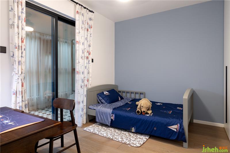 兒童房靠近馬路,為了保持清凈,將原有的陽臺(tái)用玻璃封了窗,亦可防止蚊蟲進(jìn)到房間。