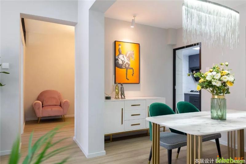 廚房門口的餐邊柜,美觀且有超大容量的收納,可以放置一些收藏的餐具。室內(nèi)設(shè)計(jì)師