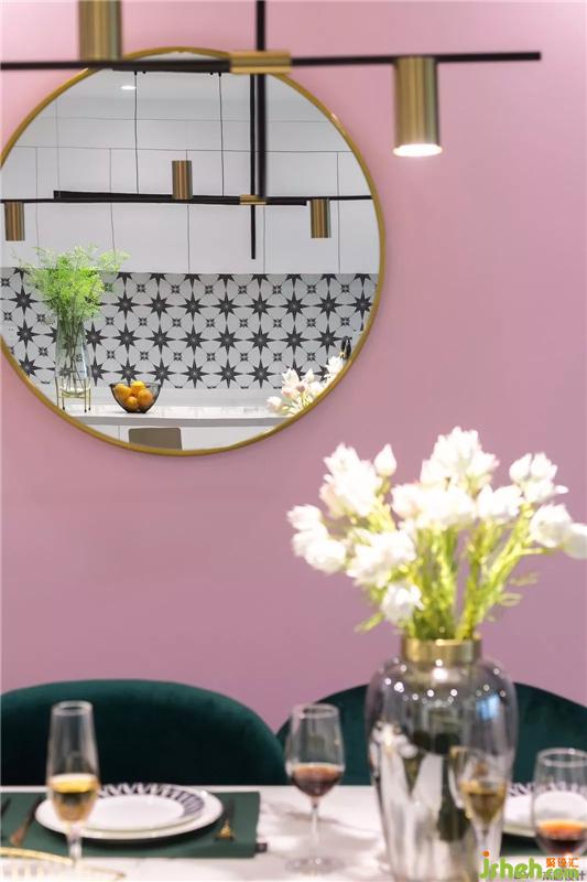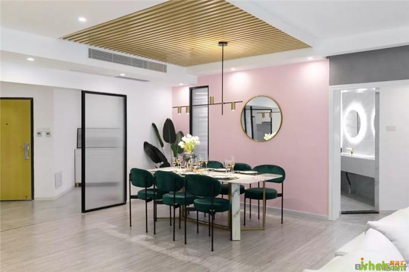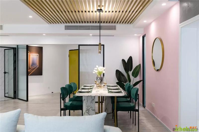 用長(zhǎng)虹玻璃將玄關(guān)與餐廚區(qū)分離,起到隔斷作用,既保證隱秘性又不會(huì)影響采光,空間感也比較輕盈。室內(nèi)設(shè)計(jì)師