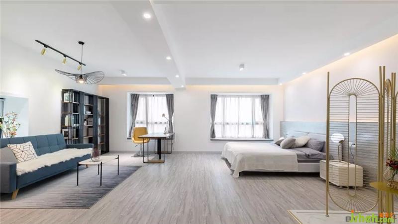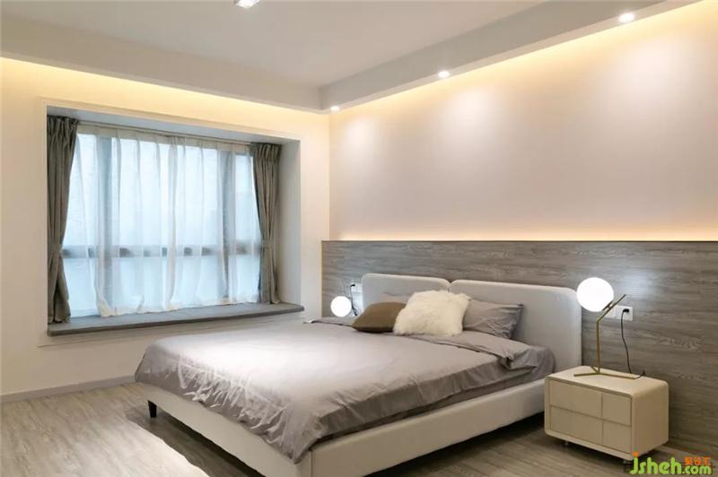 床頭后方墻壁采用木地板上墻的方式,與地板同一色調(diào),形成視覺的延伸效果。灰色調(diào),沉穩(wěn)大氣,簡(jiǎn)潔明朗的北歐風(fēng)格。